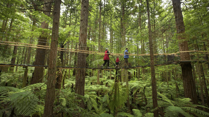 位于Rotorua市内,公园里有大量茂密的加利福尼亚红杉,也被誉为“远古森林“。最独特的树顶步道由23条悬索桥和活动的观景平台组成,悬挂在高大的红杉树之间。